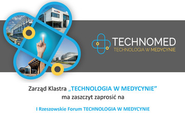 Zarząd Klastra TECHNOLOGIA W MEDYCYNIE zachęca do udziału w I Rzeszowskim Forum TECHNOLOGIA W MEDYCYNIE „Od pomysłu do przemysłu”.