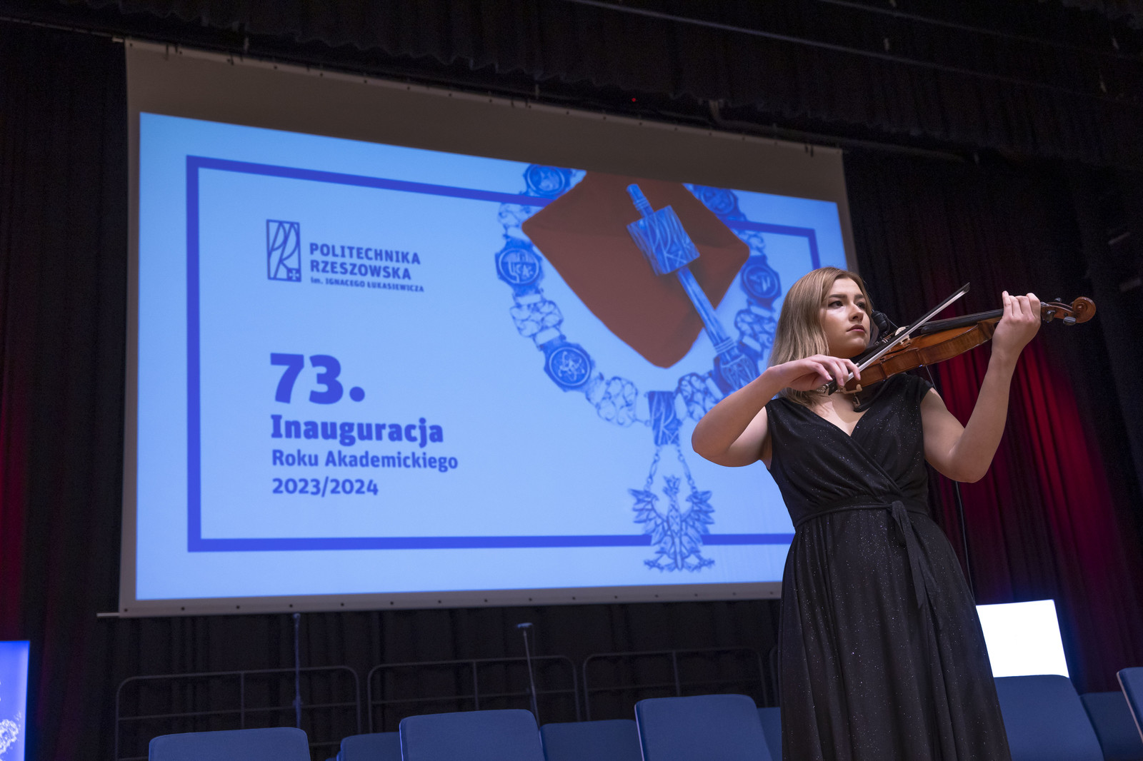 „Droga Młodzieży Akademicka, Szanowni Zebrani zgodnie z tradycją ogłaszam rok akademicki 2023/2024 na Politechnice Rzeszowskiej za rozpoczęty” – powiedział JM Rektor, uderzając trzy razy berłem, a Chór Akademicki odśpiewał Gaude Mater Polonia. Wykład inauguracyjny „Materiały i technologie dla lotnictwa. Wyzwania i perspektywy” wygłosiła prof. dr hab. inż. Romana Ewa Śliwa.