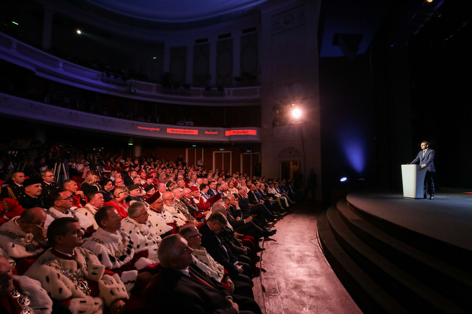 ‒ W nowy rok akademicki wkraczamy z Konstytucją dla Nauki, która, wierzę głęboko, będzie milowym krokiem w kierunku budowy siły polskiej nauki, polskich uczelni ‒ zaznaczył w przemówieniu premier RP Mateusz Morawiecki.